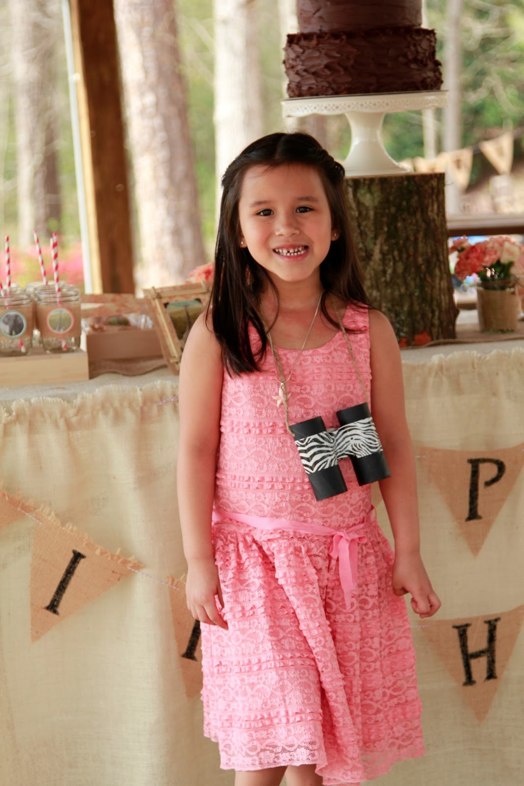 This year for my daughter’s fifth birthday party, I decided to celebrate her love for animals and throw her a safari animal party. Everything was DIY. For the invitations I found a zebra and a giraffe card in Michael's Store from National Geographic and I used that as inspiration for the colors and themed, I used the front of the card and made the invitations with burlap, also I used burlap to decorate the mason jars cups. The animals on the centerpieces logs are from Target and the small ones that I put in the party favor plastic bags are from Party City. My husband helped me to cut the logs for the centerpieces, the cake stand and the drink stand. The chocolate cake was made by my mom and also the table cloth for the dessert table, she made it with burlap. The happy birthday, explore, and safari signs are made with burlap and the letters are painted with a stencil. I sewed the giraffe and the zebra fabric bags and transferred the animals that I printed in my home printer, I printed the animals in a fabric transfer paper with a technique that I found on the Internet, very easy!! The binoculars are made with toilet paper rolls, very cheap, I just glued them together and painted them with a black spray paint and the final touch was the zebra duck tape. I found the safari hats at Amazon.com, also very cheap. My cousin Claudia from Guatemala made this beautiful animal masks, she is very talented, the kids loved them!! After everyone had their gear they were ready for an adventure. The kids headed off on a Safari Adventure looking for plastic animals that had been hidden around the woods. My friends Jaime and Eric Cho helped me to entertained the kids with fun games and activities, the kids were very excited!! National Geographic has a lot of activities for an animal or safari themed!! Elizabeth had a great time with her friends and family, also because her grandparents were here visiting from Guatemala!! Definitely she is going to remember her 5th Birthday Party!!